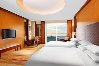 陀山机场仅20分钟车程。酒店楼高22层,拥有各类豪华客房,每间客房均配有独有的喜来登甜梦之床、热带雨淋花洒、观景阳台、笔记本电脑充电保险箱、高速因特网接入等设施。套房面积从90到300平方米不等,每一间套房均由宽敞的客厅、行政工作区域、舒适的睡房及宽大的浴室组成。行政楼层独有的行政酒廊,拥有独立的前台、餐厅、酒吧等设施,客人可以在这里办理入住手续,无需在一楼排队等候;也可以在这里用餐、品茗、饮酒、翻阅时尚报刊杂志,尽享行政楼层独有的尊贵服务。
