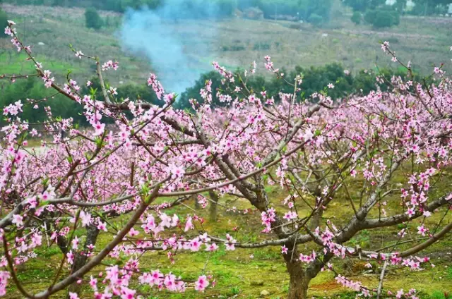 溪口的好山好水,不仅汇成了一处灵山宝地,更是养出了一片桃林仙境,每逢春天,这里万亩桃花绽放,灿若云霞,远远望去,一片花海红粉菲菲,如云蒸霞蔚一般,看得人心痒痒。到夏天的时候,漫山桃树结果,个大鲜红的模样更是引人发馋。